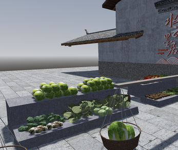 This is class MMp 271 Final project I'm still working on. I built a Chinese-style town where people sell vegetables on the street. Now, some mice are stealing the food, and the player needs to stop them. It's not finished yet — more features will be added later